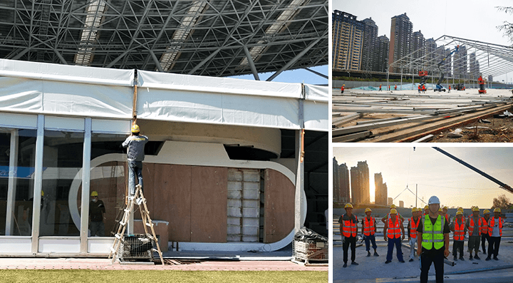 大型篷房可滿(mǎn)足于各種不同的活動(dòng)需要。跨度:10m-40m,模塊化結(jié)構(gòu),搭建工期短,易于組裝和拆卸。